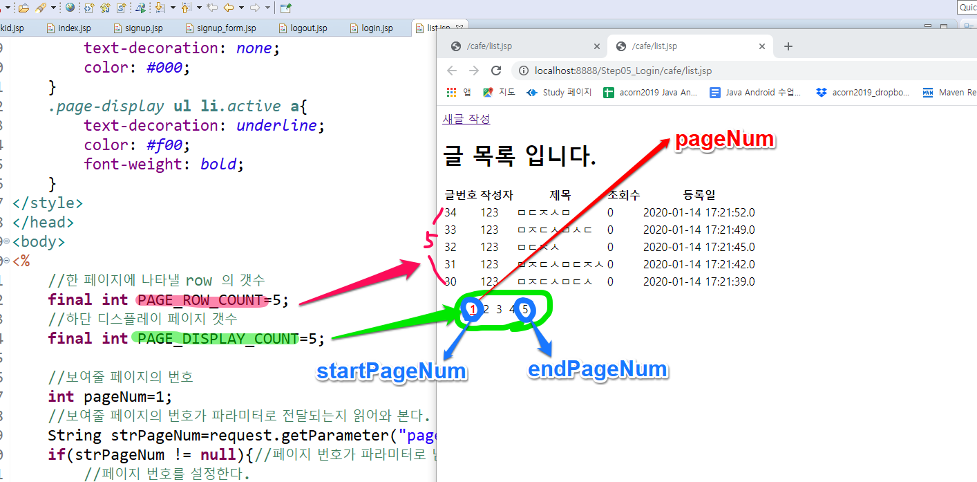 페이징에 필요한 로직이며 아래 그림의 변수를 참고하여 상황에 알맞게 변경하여 사용가능하다.