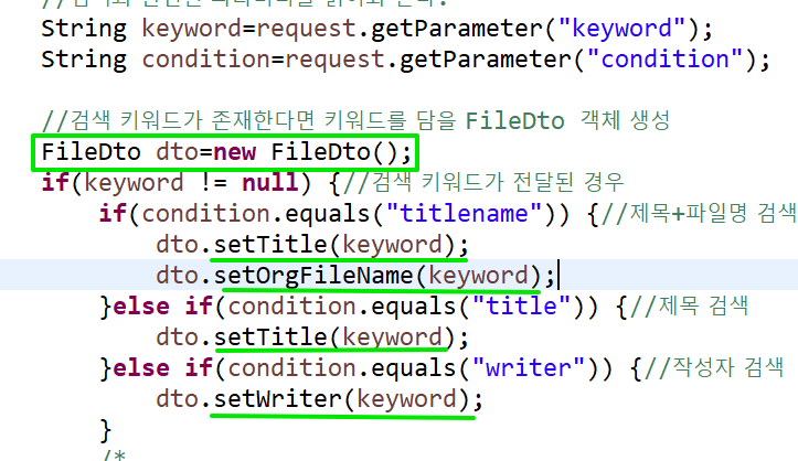 if(condition.equals("titlename")) {//제목+파일명 검색