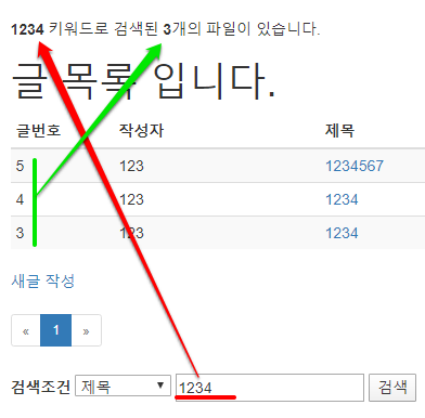 게시판 검색을 이용한 경우에는 검색한 리스트만,
