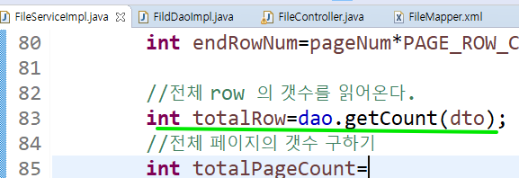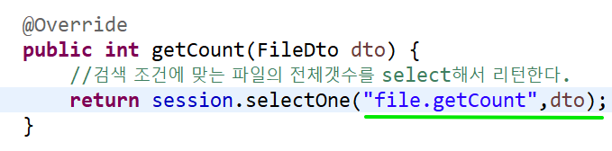 getCount-페이징 로직에 사용하는 파일 전체의 갯수리턴