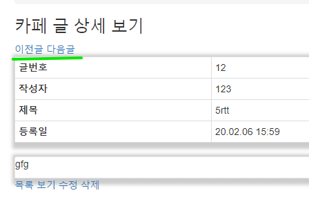 글 목록보기에서 제목을 누르면 들어가지는 detail(카페 글 상세보기)에서 이전글과 다음글을 볼 수 있는 링크를 단다.