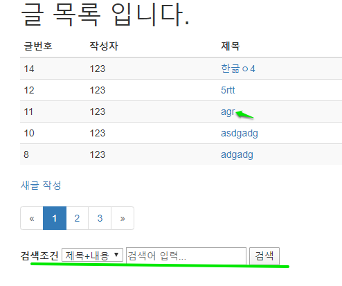 참고: 글번호가 큰 순서(최신 작성된순서)대로 출력하고 있다.