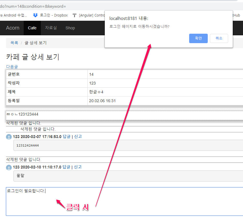 datail.jsp-댓글 textarea에 click이벤트가 일어났을 때 로그인 여부에 따라 반응하기