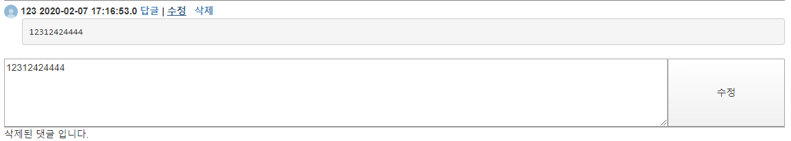 댓글의 글번호가 대댓글의 그룹번호로 쓰일 것이기 때문에 대댓글을 쓸 때는