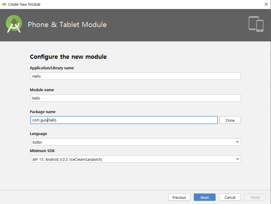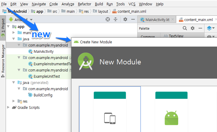 모듈 만들기 (안드로이드는 모듈 하나당 app하나가 가능~)