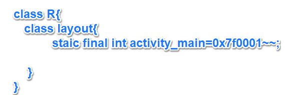 R이라는 class안에 layout이라는 class안에 하나씩 16진수로 이루어진 값을 부여받은 번호가 있다.